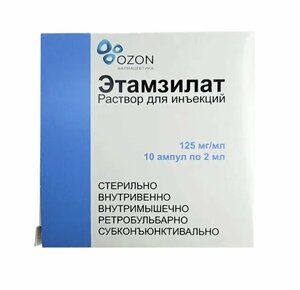 Главная » Аптека Этамзилат-Озон Раствор для инъекций 125 мг/мл Ампулы 2 мл 10 шт Просмотров 3 Гемостатическое средство. Озон