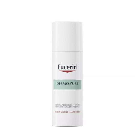 Успокаивающий увлажняющий крем для проблемной кожи Eucerin DermoPure — увлажняющий крем для склонной к появлению акне кожи, специально разработанный для людей, проходящих лечение от акне. Одним из побочных эффектов лечения угревой сыпи является то, что оно часто вызывает сильную сухость кожи. Этот интенсивно увлажняющий, нежирный крем успокаивает такие симптомы. Церамиды поддерживают защитный барьер кожи и уменьшают потерю влаги, SymSitive* помогает успокоить раздражение, например, покалывание и жжение непосредственно в месте возникновения, а ликохалкон А уменьшает покраснение. Формула помогает взять под контроль требовательную, проблемную и склонную к акне кожу, и она чувствует себя гладкой и эластичной после первого применения. Успокаивающий крем Eucerin DermoPure подходит для использования во время беременности. * Зарегистрированная торговая марка Symrise AG, Германия Клинические исследования Клинические и дерматологические исследования доказали высокую переносимость и эффективность для проблемной и чувствительной кожи.