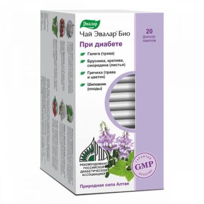 Описание: Чай Эвалар БИО при диабете на основе галеги лекарственной, которая способствует снижению уровня глюкозы и холестерина в крови. Компоненты чая: Плоды шиповника обладают разнообразной фармакологической активностью, обусловленной в основном действием аскорбиновой кислоты, которая принимает непосредственное участие в окислительно-восстановительных процессах, повышает устойчивость и защитные реакции организма к инфекциям и другим неблагоприятным факторам внешней среды, стимулирует кроветворный аппарат, усиливает фагоцитарную способность лейкоцитов. Трава галеги лекарственной (козлятник лекарственный) содержит алкалоид галегин. При лечении диабета галегин применяют как дополнительное средство к лечению инсулином. Галегин снижает уровень глюкозы в крови, за счет нормализации деятельности печени снижается уровень холестерина в крови. Помогая работать выделительной системе организма, галегин способствует нормализации водно-солевого баланса организма, углеводного и жирового обмена в тканях. Синергическое действие экстрактов растений, входящих в сборы вместе с галегой, дают организму диабетика возможность эффективно бороться с воспалениями, снижают жар, оказывают мягкое мочегонное и слабительное воздействие. Трава галеги оказывает мочегонное, потогонное, гипогликемическое действие, увеличивает содержание гликогена в печени и толерантность к глюкозе, ингибирует почечную инсулиназу. Листья брусники оказывают дезинфицирующее, мочегонное и желчегонное действия, тем самым ускоряют выведение из организма глюкозы и нерастворимых солей. Отвар и настой листьев брусники используют при отеках, вызывает снижение уровня сахара в крови, это может быть использовано при лечении диабета. Трава и цветки гречихи – применяются при гипо- и авитаминозах Р, в качестве средства, уменьшающего хрупкость и проницаемость капилляров, применяется для профилактики наклонности к кровоизлияниям в сетчатку глаза. Гречиха оказывает благотворное действие при нарушениях кровообращениях, спазмах сосудах и отеках. Листья смородины черной обладают сильным потогонным, мочегонным и противовоспалительным действием, являются прекрасным поливитаминным средством, рекомендуются при повышенной ломкости капилляров, нарушениях об-мена веществ. Листья крапивы улучшают обмен веществ, повышают сопротивляемость организма, могут быть использованы как противодиабетическое средство благодаря наличию в ней секретина, который стимулирует образование инсулина. Крапива очищает кровь и обладает желчегонным и мочегонным действием, усиливает основной обмен, оказывает противовоспалительное действие, улучшает снабжение тканей кислородом. 100% натуральный состав. Большинство трав, входящих в состав, собираются на Алтае или выращиваются на собственных плантациях Эвалар в экологически чистых предгорьях Алтая без использования химикатов и пестицидов; Высокая микробиологическая чистота чаев обеспечивается мягким способом обработки – «мгновенный пар» — на современной французской установке. Для наилучшего сохранения целебных свойств, тонкого вкуса и аромата травяного чая каждый фильтр-пакет индивидуально упакован в многослойный защитный конверт. Форма выпуска: 20 фильтр-пакетов массой 2 г Противопоказания При индивидуальной непереносимо