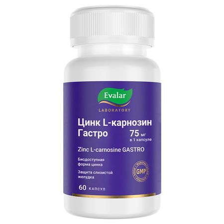 «Цинк L-карнозин Гастро» от Evalar Laboratory — это хелатное соединение, состоящее из иона цинка и дипептида карнозина. Основное применение такой формулы — это поддержка здоровья желудочно-кишечного тракта. Ее механизм действия заключается в защите слизистой оболочки желудка и кишечника.«Цинк L-карнозин Гастро» от Evalar Laboratory образует защитный барьер на стенках желудка, снижает воспаление и способствует регенерации клеток слизистой. Исследования показывают, что это уникальное соединение эффективно при лечении язв, гастрита и для предотвращения синдрома «протекающего кишечника».