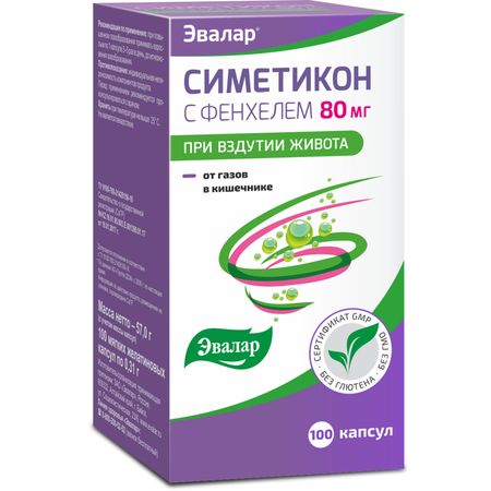 Эвалар Симетикон с фенхелем капс 0,31г №100 БАД