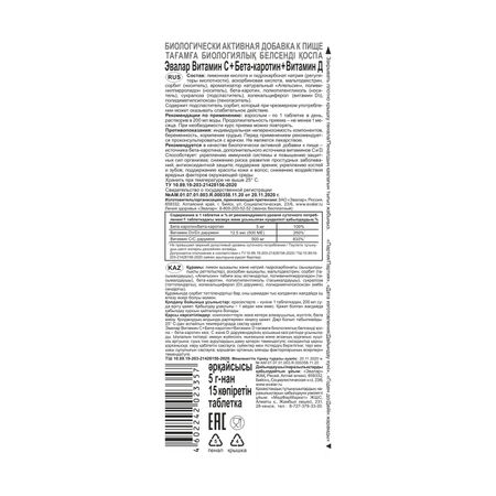 Эвалар витамин С бета-каротин витамин Д таб. шип. 5г №15 БАД