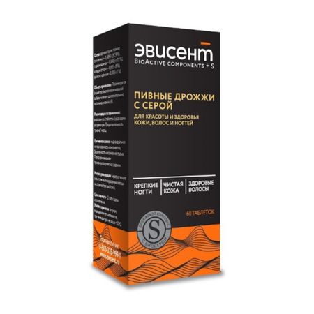 Эвисент Дрожжи Пивные С Серой Таб.0,5Г №60
