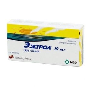 Показания к применению- первичная гиперхолестеринемия; Эзетрол назначают в комбинации с ингибиторами ГМГ-КоА-редуктазы (статинами) или в качестве монотерапии в дополнение к диете для снижения повышенного уровня общего Хс, Хс-ЛПНП, аполипопротеина В и триглицеридов, а также для повышения уровня Хс-ЛПВП у пациентов с первичной (гетерозиготной семейной и несемейной) гиперхолестеринемией;- гомозиготная семейная гиперхолестеринемия; Эзетрол в комбинации со статинами рекомендуется для снижения повышенного уровня общего Хс, Хс-ЛПНП; пациенты могут также получать дополнительное лечение, например ЛПНП-аферез;- гомозиготная ситостеролемия (или фитостеролемия); Эзетрол рекомендуется для снижения повышенного уровня ситостерола и кампестерола.Применение при беременности и кормлении грудьюКлинические данные о применении препарата Эзетрол при беременности отсутствуют. Поэтому применение Эзетрола при беременности не рекомендуется. В случае наступления беременности прием Эзетрола следует прекратить.Данных о выведении эзетимиба с грудным молоком у женщин не имеется. При необходимости применения препарата в период лактации следует прекратить грудное вскармливание.В экспериментальных исследованиях на животных с введением эзетимиба не выявлено прямого и опосредованного неблагоприятного воздействия на беременность, развитие эмбриона/плода, роды и постнатальное развитие. При введении беременным крысам эзетимиба в комбинации с ловастатином, симвастатином, правастатином и аторвастатином тератогенных эффектов не наблюдалось. При введении беременным кроликам с небольшой частотой отмечались дефекты развития скелета у плода.В исследованиях на крысах было выявлено, что эзетимиб выводится с грудным молоком. В связи с этим Эзетрол не рекомендуется применять у кормящих матерей.Противопоказания- умеренная (7-9 баллов по шкале Чайлд-Пью) и тяжелая (более 9 баллов по шкале Чайлд-Пью) степень печеночной недостаточности;- непереносимость лактозы, дефицит лактазы или синдром мальабсорбции глюкозы/галактозы;- детский возраст до 18 лет;- повышенная чувствительность к любому из компонентов препарата.При назначении Эзетрола в комбинации со статином для контроля противопоказаний необходимо следовать инструкциям по применению назначенного статина.С осторожностью следует назначать препарат пациентам, получающим циклоспорин; одновременное применение с фибратами до получения дополнительных данных по результатам клинических исследований не рекомендуется.СоставЭзетимиб 10 мгВспомогательные вещества: лактозы моногидрат, целлюлоза микрокристаллическая, повидон, кроскармеллоза натрия, натрия лаурилсульфат, магния стеарат.
