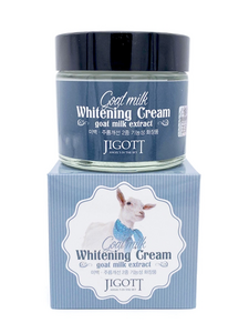 Увлажняющий крем от Jigott Goat Milk Whitening Cream с активным отбеливающим действием эффективно восстанавливает тусклую, пигментированную и обезвоженную кожу.Протеины козьего молока насыщают кожу витаминами, минералами, белками, жирными кислотами и аминокислотами, питают её, увлажняют и смягчают, ускоряют синтез коллагена, предотвращают преждевременное старение, повышают упругость и эластичность, обладают выраженным регенерирующим и успокаивающим действием, осветляют пигментацию и постакне.Ниацинамид стимулирует синтез коллагена, выработку церамидов и липидов, способствует осветлению пигментации различного происхождения.