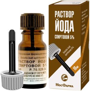 Главная » Аптека Йод 5% Раствор для наружного применения спиртовой с лопаткой 10 мл Просмотров 10 Прозрачная жидкость красно-коричневого цвета с характерным запахом. МОСКОВСКАЯ ФФ
