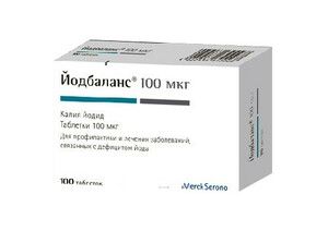 Показания к применению Профилактика йоддефицитных заболеваний, в т.ч. эндемического зоба (особенно у беременных и кормящих женщин); профилактика рецидива зоба после его хирургического удаления или после завершении лечения зоба препаратами гормонов щитовидной железы; лечение диффузного эутиреоидного зоба у новорожденных, детей, подростков и взрослых пациентов молодого возраста. профилактика рецидива зоба в период проведения комплексного лечения препаратами гормонов щитовидной железы.Применение при беременности и кормлении грудьюПри беременности и в период грудного вскармливания потребность в йоде повышается, поэтому особенно важным является применение Йодбаланса в достаточных дозах для обеспечения адекватного поступления йода в организм (поступление йода должно быть неСледует учитывать, что препарат в высоких дозах (> 1000 мкг/сут) хорошо проникает через плацентарный барьер и может вызвать развитие гипотиреоза и зоба у плода. Йод также выделяется с грудным молоком. Поэтому применение препарата при беременности и в период грудного вскармливания возможно только в рекомендуемых дозах.Противопоказания Выраженный тиреотоксикоз. Скрытый тиреотоксикоз (при применении в дозах >150 мкг/сут). Герпетиформный дерматит Дюринга. Токсическая аденома, узловой зоб при применении в дозах >300 мкг/сут (за исключением предоперационной терапии с целью блокады щитовидной железы). Повышенная чувствительность к йоду . Крапивница. Гипотиреоз (за исключением тех случаев, когда развитие последнего вызвано выраженным дефицитом йод).Побочное действиеПри профилактическом применении Йодбаланса, а также при терапевтическом применении у новорожденных, детей и подростков побочного действия, как правило, не наблюдается. Аллергические реакции Иногда — кожная сыпь, отек Квинке. Состав 1 таб.калия йодид130.8 мкг,что соответствует содержанию йода100 мкгВспомогательные вещества:магния стеарат,целлюлоза микрокристаллическая,кремния диоксид коллоидный,крахмал кукурузный,целлюлозы порошок,лактозы моногидрат.Взаимодействие с другими препаратамиЭффективность лечения антитиреоидными ЛС при одновременном приеме йода снижается.Калия перхлорат подавляет поглощение йода щитовидной железой.Прием высоких доз йода и одновременное назначение калийсберегающих диуретиков может привести к развитию гиперкалиемии.Одновременное назначение йода в высоких дозах с препаратами лития способствует развитию зоба и гипотиреоза.Поглощение йода щитовидной железой и его метаболизм стимулируются ТТГ.