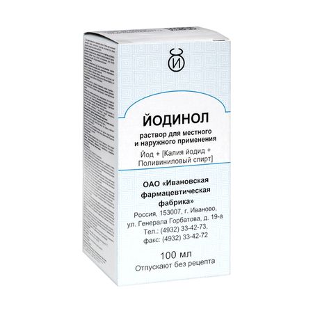 Показания При контакте с кожей или слизистыми оболочками на 30% превращается в йодиды, а остальная часть — в активный йод. Частично всасывается. Абсорбированная часть проникает в ткани и органы, селективно поглощается щитовидной железой. Выделяется главным образом почками, кишечником, потовыми и молочными железами. Фармакологическое действие Элементарный йод обладает выраженными противомикробными свойствами. Для препаратов элементарного йода характерно выраженное местнораздражающее действие на ткани, а в высоких концентрациях — прижигающий эффект. Местное действие обусловлено способностью элементарного йода осаждать тканевые белки. Препараты, отщепляющие элементарный йод, оказывают значительно менее выраженное раздражающее действие, а йодиды обладают местно-раздражающими свойствами только в очень высоких концентрациях. Лекарственное взаимодействие Фармацевтически несовместим с эфирными маслами, растворами аммиака, белой осадочной ртутью (образуется взрывчатая смесь). Щелочная или кислая среда, присутствие жира, гноя, крови ослабляют антисептическую активность.