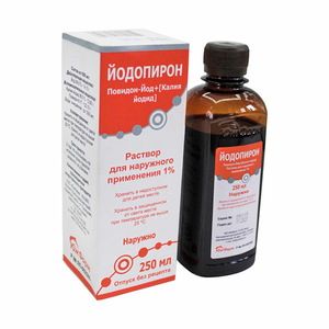 Главная » Аптека Йодопирон Раствор для наружного применения 1 % 250 мл Просмотров 7 Антисептик для наружного применения. Южфарм