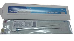Контрацептив внутриматочный «Юнона Био-Т» является классической моделью Т-образного ВМС. Контрацептив изготовлен из полимерного материала и имеет Т-образную форму якоря с заданными характеристика. На стержне спирали размещена медная проволка, на конце стержня выполнена петля для крепления монофиламентной трансцервикальной нити. Максимальная длина спирали 36мм, максимальная ширина 32ммм. Степень чистоты меди в медной проволке не менее 99,9%. Номинальная площадь активной медьсодержащей поверхности 380 мм2. ВМС поставляется в блистерной упаковке в комплекте с полимерной вводной трубкой диаметром 4,5 мм и поршнем. Вступительная трубка имеет передвижной пластмассовый ограничитель для обозначения глубины введения средства и направления плоскости раскрытия плечиков якоря.