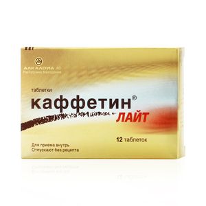 Показания к применениюБолевой синдром умеренной выраженности различного генеза: головная и зубная боль, мигрень, невралгия, миалгия, посттравматические боли, артралгия, альгодисменорея, лихорадка при гриппозных инфекциях.Применение при беременности и кормлении грудьюКаффетин; ск противопоказан к применению при беременности и в период кормления грудью.ПротивопоказанияПовышенная индивидуальная чувствительность к компонентам препарата; печеночная и/или почечная недостаточность; дефицит глюкозы-6-фосфат дегидрогеназы; лейкопения; нарушение кроветворения; повышенная возбудимость; бессонница; стенокардия на фоне коронаросклероза; беременность и период лактации; детский возраст (до 7 лет).Побочное действиеЛейкопения, агранулоцитоз, тошнота, гастралгия, рвота, повышение активности «печеночных» трансаминаз, повышенная возбудимость (особенно у детей), аллергические реакции (кожная сыпь, отек Квинке, зуд, крапивница).СоставПарацетамол 250 мг;пропифеназон 210 мг;кофеин 50 мг;Вспомогательные вещества: магния стеарат 13.5 мг, натрия лаурилсульфат 1.5 мг, натрия крахмала гликолат 14.5 мг, кремния диоксид коллоидный 2.5 мг, повидон 12.5 мг, кальция дигидрофосфат 21.1 мг, целлюлоза микрокристаллическая 28.5 мг, кроскармеллоза натрия 9.6 мг, глицерил дибегенат 6.3 мг.Взаимодействие с другими препаратамиСледует избегать комбинации препарата с барбитуратами, противоэпилептическими средствами, зидовудином, рифампицином и алкогольсодержащими напитками (увеличивается риск гепатотоксического эффекта).;Под воздействием парацетамола время выведения хлорамфеникола увеличивается в 5 раз. Метоклопрамид ускоряет всасывание парацетамола. При повторном приеме парацетамол может усилить действие антикоагулянтов (производных дикумарина). Кофеин ускоряет всасывание эрготамина.