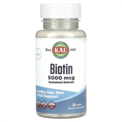 KAL, Биотин, с замедленным высвобождением, 5000 мкг, 60 таблеток