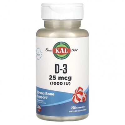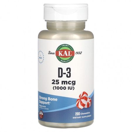 Описание Прием 1 раз в деньЗаслуживающее доверия качество с 1932 годаУкрепление костейПищевая добавка Натуральный ароматизаторОписание. Жевательные таблетки KAL® D-3 обладают освежающим натуральным мятным вкусом. Витамин D необходим для правильного формирования скелета и минерального гомеостаза.