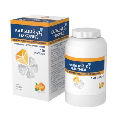 Показания Кальций Всасывание Обычно количество кальция, которое всасывается из ЖКТ, составляет примерно 30% от принятой дозы. Распределение и метаболизм 99% кальция в организме сосредоточено в жесткой структуре костей и зубов. Оставшийся 1% находится во внутри- и внеклеточных жидкостях. Около 50% от общего содержания кальция в крови находится в физиологически активной ионизированной форме, из них примерно 10% в комплексе с цитратом, фосфатом или другими анионами, остальные 40% связаны с белками, в первую очередь с альбумином. Выведение Кальций выводится через кишечник, почками и потовыми железами. Почечное выведение зависит от клубочковой фильтрации и канальцевой реабсорбции кальция. Колекальциферол Всасывание Колекальциферол легко всасывается из тонкой кишки (около 80% от принятой дозы). Распределение и метаболизм Колекальциферол и его метаболиты циркулируют в крови в связанном состоянии со специфическим глобулином. Колекальциферол метаболизируется в печени путем гидроксилирования до 25-гидроксиколекальциферола. Затем преобразуется в почках в активную форму 1.25-гидроксиколекальциферол. 1.25-гидроксиколекальциферол является метаболитом, ответственным за увеличение всасывания кальция. Неизмененный колекальциферол депонируется в жировой и мышечной ткани. Выведение Колекальциферол выводится почками и через кишечник. Фармакологическое действие Комбинированный препарат, регулирующий обмен кальция и фосфора в организме (в костях, зубах, ногтях, волосах, мышцах). Снижает резорбцию (рассасывание) и увеличивает плотность костной ткани, восполняя недостаток кальция и витамина D3 в организме, необходим для минерализации зубов. Кальций участвует в регуляции нервной проводимости, мышечных сокращений и является компонентом системы свертывания крови. Адекватное потребление кальция особенно важно в период роста, при беременности и в период лактации. Витамин D3 повышает абсорбцию кальция в кишечнике. Применение кальция и витамина D3 препятствует увеличению выработки паратиреоидного гормона, который является стимулятором повышенной костной резорбции (вымывания кальция из костей). Лекарственное взаимодействие Гиперкальциемия может потенцировать токсические эффекты сердечных гликозидов при одновременном применении с препаратами кальция и витамина D. Необходим контроль ЭКГ и содержания кальция в сыворотке крови. Препараты кальция могут уменьшать всасывание тетрациклинов из ЖКТ. Поэтому препараты тетрациклинового ряда следует принимать не менее чем за 2 ч до или через 4-6 ч после приема препарата Кальций-Д3 Никомед. Для предотвращения снижения всасывания препаратов бисфосфонатов их рекомендуется принимать не менее чем за 1 ч до приема препарата Кальций-Д3 Никомед. ГКС уменьшают всасываемость кальция, поэтому лечение ГКС может потребовать увеличения дозы препарата Кальций-Д3 Никомед. При одновременном применении диуретиков тиазидного ряда увеличивается риск возникновения гиперкальциемии, т.к. они увеличивают канальцевую реабсорбцию кальция. При одновременном применении тиазидных диуретиков следует регулярно контролировать содержание кальция в сыворотке крови. Кальций снижает эффективность левотироксина, уменьшая его всасывание. Период времени между приемами левотироксина и препарата Кальций-Д3 Никомед должен соста