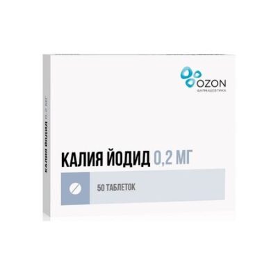 Показания При приеме внутрь быстро всасывается из ЖКТ. Широко распределяется во всех тканях и жидких средах организма. Фармакологическое действие Средство, содержащее неорганический йод. При поступлении йодидов в клетки эпителия фолликула щитовидной железы под влиянием фермента йодид-пероксидазы происходит окисление йода с образованием элементарного йода, который включается в молекулу тирозина. При этом одна часть радикалов тирозина в тиреоглобулине йодируется. Йодированные радикалы тирозина конденсируются в тиронины, основными из которых являются тироксин (Т4) и трийодтиронин (Т3). Образовавшийся комплекс тиронина и тиреоглобулина выделяется, как депонированная форма гормона щитовидной железы, в коллоид фолликула и сохраняется в таком состоянии в течение нескольких дней или недель. При дефиците йода этот процесс нарушается. Калия йодид, возмещая дефицит йода, способствует восстановлению нарушенного синтеза тиреоидных гормонов. При нормальном содержании йода в окружающей среде под влиянием избытка йодидов тормозится биосинтез тиреоидных гормонов, их выход из тиреоглобулина, снижается чувствительность щитовидной железы к тиреотропному гормону гипофиза и блокируется его секреция гипофизом. Лекарственное взаимодействие При одновременной высокодозовой терапии йодом и калийсберегающими диуретиками возможно развитие гиперкалиемии, с препаратами лития — развитие зоба и гипотиреоза. Перхлорат и тиоционат конкурентно тормозят поглощение йода щитовидной железой, а ТТГ — стимулирует. Антитиреоидные препараты ослабляют эффект (взаимно).