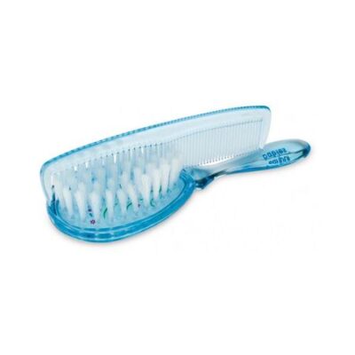Щетка нейлоновая выполнена из полностью безопасных материалов.Щетина выполнена из искусственного материала, нежно массирует голову малыша, не электризует волосы и отлично подходит для счесывания себорейных корочек. Округлая форма щетки безопасна в использовании, а яркие цвета порадуют малыша. В комплект входит гребешок.