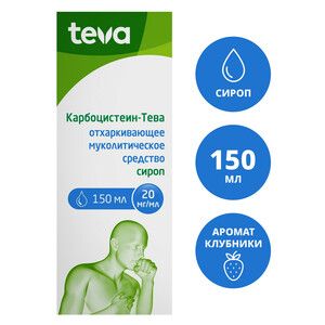 Главная » Аптека Карбоцистеин-Тева Сироп 20 мг/мл 150 мл Просмотров 6 Прозрачная, бесцветная или светло-желтая жидкость ТЕВА