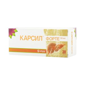 Показания к применениюВ составе комплексной терапии:- токсического поражения печени;- состояний после перенесенного острого гепатита;- хронического гепатита невирусной этиологии;- стеатоза печени (не алкогольного и алкогольного);- цирроза печени;- профилактики печеночных поражений при продолжительном приеме лекарств, алкоголя, при хронической интоксикации (в т.ч. профессиональной).Применение при беременности и кормлении грудьюНе рекомендуется применять препарат во время беременности и в период грудного вскармливания.Противопоказания- гиперчувствительность к активному или любому из вспомогательных веществ;- дети младше 12 лет;- лактазная недостаточность, галактоземия или синдром мальабсорбции глюкозы/галактозы (из-за наличия в составе лактозы).- целиакия (глютеновая энтеропатия) (из-за наличия в составе пшеничного крахмала).С осторожностью: назначают пациентам с гормональными нарушениями (эндометриоз, миома матки, карцинома молочной железы, яичников и матки, карцинома предстательной железы) из-за возможного проявления эстрогеноподобного эффекта силимарина.Побочное действиеЛекарственный препарат хорошо переносится. Побочные реакции наблюдаются очень редко и они, как правило, легкие и преходящие.Нежелательные побочные реакции классифицированы по частоте и по системно-органным классам.Со стороны иммунной системы: очень редко — кожные аллергические реакции — зуд, сыпь; с неизвестной частотой — анафилактический шок.Со стороны органа слуха и лабиринтные нарушения: редко — усиление существующих вестибулярных нарушений.Со стороны ЖКТ: редко — диарея в результате усиленной функции печени и желчного пузыря; с неизвестной частотой — тошнота, рвота, диспепсия, уменьшение аппетита, метеоризм.СоставСухой экстракт плодов расторопши пятнистой 163.6-225 мг, эквивалент 90 мг силимарина, лактозы моногидрат — 38.2-7.5 мг, целлюлоза микрокристаллическая (тип 101) — 38.2-7.5 мг, крахмал пшеничный — 15.5 мг, повидон К25 — 3.7 мг, полисорбат 80 — 3.7 мг, кремния диоксид коллоидный безводный — 3.4 мг, маннитол — 80 мг, кросповидон — 14 мг, натрия гидрокарбонат — 6 мг, магния стеарат — 3.7 мг.Состав оболочки капсулы: железа оксид черный — 0.02%, железа оксид красный — 0.03%, титана диоксид — 0.6666%, железа оксид желтый — 0.35%, желатин — до 100%Взаимодействие с другими препаратамиСилимарин не оказывает существенного влияния на фармакодинамику других лекарственных препаратов.При совместном применении силимарина с пероральными контрацептивами и препаратами, которые используются при гормональной заместительной терапии, возможно уменьшение эффектов последних.Т.к. силимарин обладает ингибирующим действием на систему цитохрома Р450, возможно повышение концентрации в плазме крови таких лекарственных средств, как диазепам, алпразолам, кетоконазол, ловастатин, винбластин.