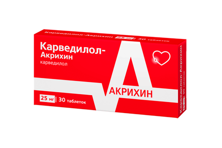 Карведилол-Акрихин 25 мг, 30 шт, таблетки