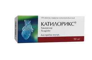 Препарат представляет собой таблетки круглой формы, двояковыпуклые, покрытые оболочкой от белого или почти белого цвета до белого с желтоватым оттенком цвета.Характеристика препарата:Препарат Катилорикс® содержит действующее вещество тикагрелор, относящееся к группе антитромботические средства, антиагреганты, кроме гепарина.Тикагрелор воздействует на клетки, называемые тромбоцитами, которые, образуя скопления (слипаясь вместе), закрывают поврежденные кровеносные сосуды и помогают остановить кровотечение. Однако тромбоциты также могут образовывать сгустки внутри пораженных кровеносных сосудов сердца и головного мозга. Это может быть очень опасно, потому что: сгусток может полностью перекрыть кровоснабжение и привести к инфаркту или инсульту сгусток может частично перекрыть кровеносные сосуды, ведущие к сердцу, и уменьшить поступление кислорода к нему, тем самым вызвать боль (нестабильную стенокардию).