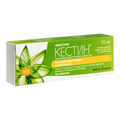 Показания Аллергический ринит (сезонный и/или круглогодичный), аллергический конъюнктивит, крапивница разлчной этиологии (в т.ч. хроническая идиопатическая). Фармакологическое действие Блокатор гистаминовых H1-рецепторов из группы производных пиперидина. Оказывает противоаллергическое действие. Характеризуется продолжительным действием (до 48 ч), что обусловлено образованием активных метаболитов. В отличие от многих блокаторов гистаминовых H1-рецепторов эбастин практически не обладает м-холиноблокирующией активностью, а также плохо проникает в ЦНС и не оказывает выраженного седативного действия. Лекарственное взаимодействие При одновременном применении эбастина с кетоконазолом или итраконазолом и эритромицином возможно увеличение интервала QTна ЭКГ. При одновременном применении рифампицин снижает концентрацию эбастина в плазме крови и оказывает ингибирующее влияние на антигистаминный эффект эбастина. Эбастин совместим с теофиллином, непрямыми антикоагулянтами, циметидином, диазепамом, этанолом и этанолсодержащими препаратами.