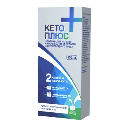 Показания Лечение и профилактика поражений кожи и волосистой части головы, вызванных дрожжеподобными микроорганизмами Malassezia furfur (Pityrosporum ovale): отрубевидный лишай; себорейный дерматит волосистой части головы; различные виды перхоти. Фармакологическое действие Кетоконазол, синтетическое производное имидазол-диоксалана, обладает противогрибковым действием в отношении дерматофитов, таких как Trichophyton spp., Epidermophyton spp., Microsporum spp. и дрожжеподобных грибов, таких как Candida spp. и Malassezia furfur (Pityrosporum ovale). Цинка пиритион — обладает антипролиферативным действием на эпителиальные клетки и проявляет противогрибковую активность в отношении Pityrosporum ovale и Pityrosporum orbiculare, вызывающих избыточное шелушение кожи. Шампунь Кето плюс быстро уменьшает шелушение и зуд кожи головы, которые обычно ассоциируются с перхотью и себорейным дерматитом.