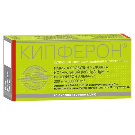 Фармакологическое действие Кипферон® представляет собой комплексную лекарственную форму, содержащую человеческий рекомбинантный интерферон-α2 и комплексный иммуноглобулиновый препарат (КИП). Обладает иммуномодулирующим, противовирусным, противохламидийным действием. Интерферон-α2 является активатором врожденного и приобретенного иммунитета, обладает выраженной противовирусной активностью, усиливает защиту от вирусных, хламидийных, микоплазменных и бактериальных инфекций, оказывает иммуномодулирующий эффект в развитии иммунологических реакций, способствует росту и сохранению нормофлоры кишечника и влагалища. Биологическая активность интерферона-α2 реализуется посредством взаимодействия с рецепторным аппаратом иммунокомпетентных и других клеток, приводящим к усилению экспрессии молекул HLA I и HLA II на поверхности всех типов клеток и регуляции кооперации клеток, повышению активности естественных киллеров, а также приданию интактным клеткам устойчивости против их цитолитического действия, пролиферации CD8 Т-клеток. Повышает выработку гамма-интерферона естественными киллерами. Комплексный иммуноглобулиновый препарат содержит специфические и неспецифические иммуноглобулины классов G, М, А. Сочетание антивирусных, антихламидийных, антибактериальных и антитоксических антител, принадлежащих к различным классам иммуноглобулинов, обеспечивает агглютинацию, нейтрализацию и преципитацию этиотропных патогенных агентов. В месте аппликации обеспечивает стабилизацию интерферона от секретов слизистых оболочек, нормализует местный иммунитет за счет поступления IgA и IgM с суппозиториями (заместительный эффект), повышает активность местно образуемых цитокинов. Лекарственное взаимодействие Отрицательного воздействия на другие лекарственные препараты не отмечено.