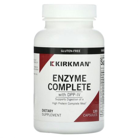 Пищевая ценностьРазмер порции: 1 капсулаПорций в упаковке: 120Каждая порция содержитКоличество в 1 порции% от суточной нормы Запатентованная смесь ферментов Kirkman® 310 мг ** Усвоение протеина: ** Пептидаза, бромелаин, папаин, протеаза ** Протеаза 3,0, протеаза 6,0 ** Усвоение жира: ** Липаза ** Усвоение углеводов: ** Глюкоамилаза, лактаза, амилаза ** Альфа-галактозиды, целлюлаза, диастаза **Инвертаза, фитаза, ксиланаза **** Суточная норма не определена. Не содержит глютенаПоддерживает пищеварение с высоким содержанием белкаПищевая добавка Протестировано по протоколу Ultra Tested Регистрация cGMP — текущая надлежащая производственная практика — стабильное качествоEnZym-Complete с DPP-IV™ — популярный пищеварительный фермент широкого спектра действия от Kirkman. Этот запатентованный продукт разработан для поддержки пищеварительной деятельности всего спектра пищевых продуктов.В состав продукта входит уникальная смесь 17 чистых растительных ферментов,необходимых для эффективного переваривания всех пищевых продуктов, включая белки, углеводы, жиры, сахар и клетчатку, в широком диапазоне уровня pH. Добавление фермента дипептидилпептидазы-4 (DPP-IV) поддерживает способность организма расщеплять пептиды, образованные в результате воздействия казеина и глютена.EnZym-Complete с DPP-IV™ обеспечивает комплексную «основу» дополнительных ферментов для поддержки оптимального пищеварения. Каждый фермент работает независимо, но также и дополняет другой, чтобы оптимально влиять на переваривание всех диетических компонентов.Кроме того, этот уникальный ферментный состав содержит комбинацию протеаз, амилаз, липаз, дисахаридов и целлюлаз, которые заменяют ферменты, потерянные при приготовлении пищи, тем самым уменьшая нагрузку на пищеварительный тракт организма для нормальной работы организма, а также поддерживая оптимальное усвоение питательных веществ.