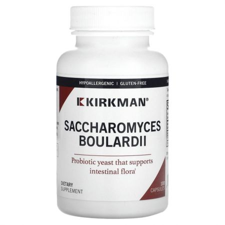 3 млрд КОЕ (на момент производства)150 мг**** Суточная норма не определена Гипоаллергенный продукт Без глютена Пробиотические дрожжи, поддерживающие кишечную флору Пищевая добавка Ultra Tested Текущая надлежащая производственная практика (cGMP) Kirkman® предлагает единственный штамм — сахаромицеты Буларди (S. boulardii) — особые дрожжи с пробиотической эффективностью.S. boulardii — это неколонизирующий вид пекарских дрожжей, который тесно связан с пивными дрожжами, известными как S. cerevisiae. Они не относятся к видам кандида (Candida albicans, tropicalis и т. д.), которые могут вызывать присутствие нездоровых микроорганизмов в желудочно-кишечном тракте и мочеполовых путях.S. boulardii — это уникальный пробиотик, который выживает при повышенной кислотности желудочного сока, не подвергается отрицательному воздействию, не ингибируется антибиотиками, не изменяет и не оказывает отрицательного воздействия на нормальную флору кишечника. По этой причине полезные пробиотические организмы (включая Lactobacillus и Bifidobacterium) можно принимать одновременно с S. boulardii.