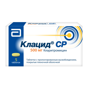 Показания к применениюЛечение инфекционно-воспалительных заболеваний, вызванных чувствительными к кларитромицину возбудителями: инфекции верхних отделов дыхательных путей и ЛОР-органов (тонзиллофарингит, средний отит, острый синусит); инфекции нижних отделов дыхательных путей (острый бронхит, обострение хронического бронхита, внебольничная бактериальная и атипичная пневмония); одонтогенные инфекции; инфекции кожи и мягких тканей; микобактериальные инфекции (M.avium complex, M.kansasii, M.marinum, M.leprae) и их профилактика у больных СПИД; эрадикация Helicobacter pylori у больных с язвенной болезнью двенадцатиперстной кишки или желудка (только в составе комбинированной терапии).Применение при беременности и кормлении грудьюПрименение в I триместре беременности противопоказано.Применение во II и III триместрах беременности возможно только в тех случаях, когда предполагаемая польза для матери превышает потенциальный риск для плода.При необходимости применения в период лактации следует прекратить грудное вскармливание.ПротивопоказанияУказание в анамнезе на удлинение интервала QT, желудочковую аритмию или желудочковую тахикардию типа пируэт; гипокалиемия (риск удлинения интервала QT); тяжелая печеночная недостаточность, протекающая одновременно с почечной недостаточностью; холестатическая желтуха/гепатит в анамнезе, развившиеся при применении кларитромицина; порфирия; I триместр беременности; период лактации (грудного вскармливания); одновременный прием кларитромицина с астемизолом, цизапридом, пимозидом, терфенадином; с алкалоидами спорыньи, например, эрготамин, дигидроэрготамин; с мидазоламом для приема внутрь; с ингибиторами ГМГ-КоА-редуктазы (статинами), которые в значительной степени метаболизируются изоферментом CYP3A4 (ловастатин, симвастатин), с колхицином; с тикагрелором или ранолазином; повышенная чувствительность к кларитромицину и к другим макролидам.СоставКларитромицин 500 мгВспомогательные вещества: лимонная кислота безводная — 128 мг, натрия алгинат — 120 мг, натрия кальция алгинат — 15 мг, лактоза — 115 мг, повидон-К30 — 30 мг, тальк — 30 мг, стеариновая кислота — 21 мг, магния стеарат — 10 мг.Состав пленочной оболочки: гипромеллоза — 9.81 мг, макрогол 400 — 3.27 мг, макрогол 8000 — 3.27 мг, титана диоксид — 1.64 мг, краситель желтый (хинолиновый желтый) — 1.23 мг, сорбиновая кислота — 0.16 мг.