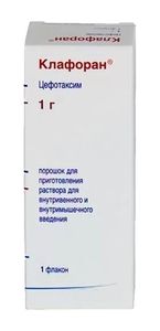 Показания к применениюПолусинтетический антибиотик группы цефалоспоринов III поколения для парентерального применения. Действует бактерицидно. Обладает широким спектром действия. Устойчив к действию большинства &#946 .-лактамаз. Клафоран активен в отношении Aeromonas hydrophila, Bacillus subtilis, Bordetella pertussis, Borrelia burgdorferi, Moraxella (Branhamella) catarrhalis, Citrobacter diversus, Clostridium perfringens, Corynebacterium diphtheriae, Escherichia coli, Enterobacter spp. (чувствительность зависит от данных эпидемиологии и от уровня устойчивости в каждой конкретной стране), Erysipelothrix insidiosa, Eubacterium spp., Haemophilus spp. (включая штаммы, продуцирующие и не продуцирующие пенициллиназу, включая ампициллин-резистентные), Klebsiella pneumoniae, Klebsiella oxytoca, метициллин-чувствительные штаммы Staphylococcus spp. (включая штаммы, продуцирующие и не продуцирующие пенициллиназу), Morganella morganii, Neisseria gonorrhoeae (включая штаммы, продуцирующие и не продуцирующие пенициллиназу), Neisseria meningitidis, Propionibacterium spp., Proteus mirabilis, Proteus vulgaris, Providencia spp., Streptococcus spp. (в т.ч. Streptococcus pneumoniae), Salmonella spp., Serratia spp. (чувствительность зависит от данных эпидемиологии и от уровня устойчивости в каждой конкретной стране), Shigella spp., Veillonella spp., Yersinia spp. (чувствительность зависит от данных эпидемиологии и от уровня устойчивости в каждой конкретной стране). К препарату устойчивы Acinetobacter baumanii, Bacteroides fragilis, Clostridium difficile, Enterococcus spp., Listeria monocytogenes, метициллин-резистентные штаммы Staphylococcus spp., Pseudomonas aeruginosa, Pseudomonas cepacia, Stenotrophomonas maltophilia, грамотрицательные анаэробы.Побочное действиеПри одновременном применении с Клафораном пробенецид задерживает экскрецию и увеличивает плазменные концентрации цефотаксима. При одновременном применении Клафоран может потенцировать нефротоксический эффект препаратов, оказывающих нефротоксическое действие. Фармацевтическое взаимодействие Раствор Клафорана несовместим с растворами других антибиотиков (в т.ч аминогликозидами) в одном шприце или инфузионном растворе.Состав1 фл. цефотаксим натрия 1.048 г, что соответствует содержанию цефотаксима 1 г. Вспомогательные вещества: гипролоза (клуцел LF) 2.4 мг, маннитол (D-маннит) 21 мг, натрия кроскармеллоза (примеллоза) 5.4 мг, целлюлоза микрокристаллическая 48.4 мг, кремния диоксид коллоидный (аэросил) 1 мг, магния стеарата моногидрат 1.8 мг. Состав оболочки: опадрай II белый 10 мг (поливиниловый спирт 4 мг, титана диоксид 2.5 мг, макрогол (полиэтиленгликоль) 2.02 мг, тальк 1.48 мг).