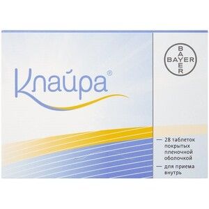 Показания к применениюпероральная контрацепция.Применение при беременности и кормлении грудьюПрием препарата Клайра противопоказан во время беременности. Если беременность наступила на фоне применения препарата Клайра, дальнейший прием необходимо прекратить. Однако крупномасштабные эпидемиологические исследования не выявили увеличения риска развития врожденных дефектов у детей, родившихся у женщин, которые использовали КПК до беременности, равно как и тератогенного воздействия КПК при их случайном приеме в начале беременности.КПК могут влиять на лактацию, поскольку они способны уменьшать объем вырабатываемого грудного молока, а также изменять его состав. Следовательно, КПК обычно не рекомендуется использовать до окончания периода лактации. Небольшое количество контрацептивных гормонов и/или их метаболитов может выделяться с грудным молоком.ПротивопоказанияНаличие или риск развития венозной тромбоэмболии (ВТЭ)o наличие венозной тромбоэмболии в настоящее время (во время терапии антикоагулянтами) или в анамнезе (например тромбоза глубоких вен (ТГВ), тромбоэмболии легочной артерии (ТЭЛА)o известна наследственная или приобретенная склонность к венозной тромбоэмболии, такая как резистентность к активированному протеину С (в том числе мутация фактора V Лейдена), дефицит антитромбина-III, дефицит протеина С, дефицит протеина S;o большие оперативные вмешательства с длительной иммобилизацией (см. раздел «Особенности применения»);o высокий риск венозной тромбоэмболии из-за наличия множественных факторов риска (см. раздел «Особенности применения»).Наличие или риск развития артериальной тромбоэмболии (АТЕ):o артериальная тромбоэмболия — наличие артериальной тромбоэмболии в анамнезе (например инфаркта миокарда) или наличие продромальных симптомов (например стенокардия)o нарушение мозгового кровообращения — инсульт в анамнезе, наличие продромальных симптомов (например транзиторной ишемической атаки (ТИA))o известна наследственная или приобретенная склонность к артериальной тромбоэмболии, такая как гипергомоцистеинемия и антитела к фосфолипидам (антитела к кардиолипинам, волчаночный антикоагулянт)o мигрень с очаговыми неврологическими симптомами в анамнезеo высокий риск артериальной тромбоэмболии из-за наличия множественных факторов риска (см. раздел «Особенности применения») или из-за наличия одного серьезного фактора риска, такого как:сахарный диабет с сосудистыми осложнениями;тяжелая артериальная гипертензия;тяжелая дислипопротеинемия;Тяжелое заболевание печени в анамнезе, пока показатели функции печени не вернулись в пределы нормы.Доброкачественная или злокачественная опухоль печени в настоящее время или в прошлом.Или предполагаемые злокачественные опухоли (например, половых органов или молочных желез), зависимые от половых гормонов.Вагинальное кровотечение неясной этиологии.Повышенная чувствительность к действующим веществам или к любому из компонентов препарата.