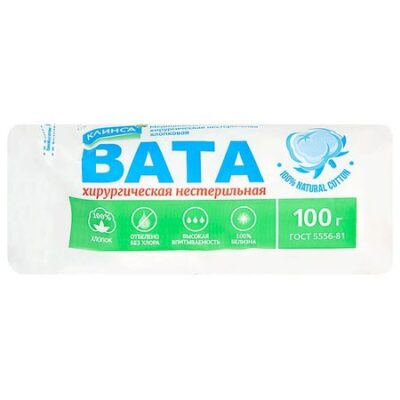 Главная » Аптека Клинса Вата Хирургическая Нестерильная 100Г Просмотров 5 Изготовлена из 100% высококачественного хлопка, отбелена без хлора. Высокой гигроскопичности, без узелков. Мягкая на ощупь. Русвата