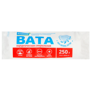 Главная » Аптека Клинса Вата хирургическая стерильная 250 г Просмотров 9 Изготовлена из 100% высококачественного хлопка, отбелена без хлора. Высокой гигроскопичности, без узелков. Мягкая на ощупь. Русвата