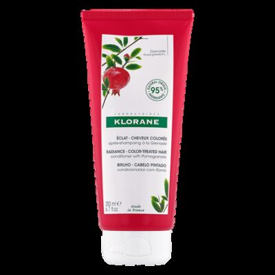 Сенсорный и тающий, этот кондиционер действует на концы и по длине благодаря кислому pH, который помогает сузить весы. С первого использования окрашенные волосы питаются, легко распутываются и раскрывают весь свой свет. Окраска остается насыщенной и сияющей. Линейка средств Клоран Гранат — идеальное решение для окрашенных волос. Дополните уход кондиционером с экстрактом Граната для сохранения насыщенного цвета и здоровья волос. Кожура граната, богатая танинами, издавна известна свойством придавать и фиксировать цвет. Лаборатория Клоран разработала гамму средств на основе концентрата из высушенной кожуры граната для защиты и усиления цвета волос. Klorane Après-shampooing à la Grenade не только фиксирует цвет, но и питает волосы, распутывает их и облегчает расчесывание. Мягкие, шелковистые, гладкие волосы снова будут радовать вас. Средство обладает тающей кремовой текстурой и приятным ароматом. Данные клинических испытаний среди 70 добровольцев: 94% довольны мгновенным распутыванием волос после нанесения кондиционера; 84% — отметили сохранение цвета; 85% — сохранение естественного блеска. Активные компоненты: экстракт кожуры граната обладает восстанавливающими свойствами, сохраняет насыщенность цвета; протеины способствуют восстановлению структуры волос. 95% натуральных ингредиентов без минеральных масел без парабенов без силикона