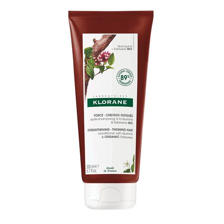 Укрепите волосы и наполните их силой и здоровьем по всей длине с Klorane Apres-shampooing Quinine et Edelweiss Bio. Средство смягчает и разглаживает локоны, делает их шелковистыми и послушными. Волосы меньше путаются, легко расчесываются, что снижает их ломкость и выпадение. День за днем кондиционер Клоран с экстрактом Хинина и Эдельвейса восстанавливает волосы, повышает их густоту, придает ухоженный и сияющий вид. Продукт отлично подходит для комплексного ухода при выпадении волос. В ходе исследований подтверждено: уменьшение ломкости волос при расчесывании на 84%; легкое расчесывание и послушность локонов отметили 88% добровольцев; укрепляющий эффект — 85%. Активные компоненты: экстракт хинина улучшает микроциркуляцию, укрепляет волосяную структуру, предупреждает ломкость и выпадение; экстракт эдельвейса проявляет увлажняющие, смягчающие и антиоксидантные свойства. 89% природных компонентов биоразлагаемая формула без веществ животного происхождения без минеральных масел без силикона