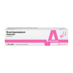 Главная » Аптека Клотримазол-Акрихин Мазь для наружного применения 1 % 20 г Просмотров 5 Однородная мазь мазь белого или почти белого цвета со слабым специфическим запахом Акрихин