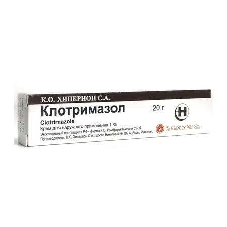 Показания грибковые заболевания кожи, микозы кожных складок, стоп; отрубевидный лишай, эритразма, поверхностные кандидозы, вызванные дерматофитами, дрожжевыми (включая род Candida), плесневыми и другими грибами и возбудителями, чувствительными к клотримазолу; микозы, осложненные вторичной пиодермией. Фармакологическое действие Клотримазол является производным имидазола. Противогрибковое средство широкого спектра действия. Эффект препарата связан с нарушением синтеза эргостерина, входящего в состав клеточной мембраны грибов, что вызывает изменение ее структуры и свойств, и приводит к лизису клетки. При концентрациях 1 мкг/мл in vitro и более 6 мкг/мл in vivo клотримазол действует фунгистатически. При концентрациях более 10 мкг/мл обладает фунгицидным эффектом в отношении большинства видов грибов, причем не только на пролифелирующие клетки. В отношении Candida оказывает фунгицидное действие при концентрациях 2 мкг/мл и выше. В фунгицидных концентрациях взаимодействует с митохондриальными и пероксидазными ферментами, в результате чего происходит увеличение концентрации перекиси водорода до токсического уровня, что также способствует разрушению грибковых клеток. К клотримазолу чувствительны дерматофиты, дрожжевые грибы (рода Candida, Torulopsis glabrata, Rhodotorula), плесневые грибы, а также возбудитель Pityriasis versicolor (разноцветного лишая) и возбудитель эритразмы. Оказывает антимикробное действие в отношении грамположительных (стафилококки, стрептококки) и грамотрицательных бактерий (Bacteroides, Gardnerella vaginalis), а также в отношении Trichomonas vaginalis, Malazessia furfur (возбудитель Pityriasis versicolor) и Corynebacterium minussimum (возбудитель эритразмы). Лекарственное взаимодействие Амфотерицин В, нистатин, натамицин снижают эффективность клотримазола при одновременном применении. При применении крема отрицательные взаимодействия с другими средствами не известны и их не следует ожидать, т.к. резорбционная способность клотримазола очень низкая.