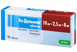 Главная » Аптека Ко-Дальнева Таблетки 10 мг + 2,5 мг + 8 мг 30 шт Просмотров 7 Антигипертензивный препарат. КРКА