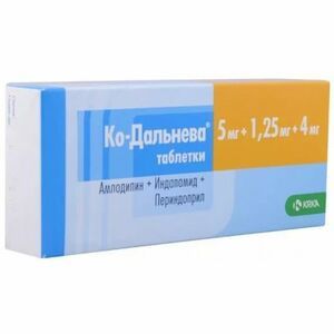 Главная » Аптека Ко-Дальнева Таблетки 5 мг + 1,25 мг + 4 мг 90 шт Просмотров 6 Антигипертензивный препарат. КРКА