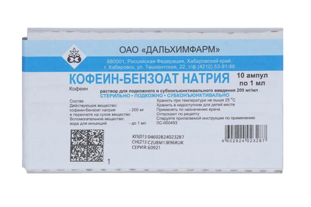 Главная » Аптека Кофеин-бензоат натрия 200 мг/мл, 1 мл, 10 шт, раствор для подкожного и субконъюнктивального введения Просмотров 6 Дальхимфарм