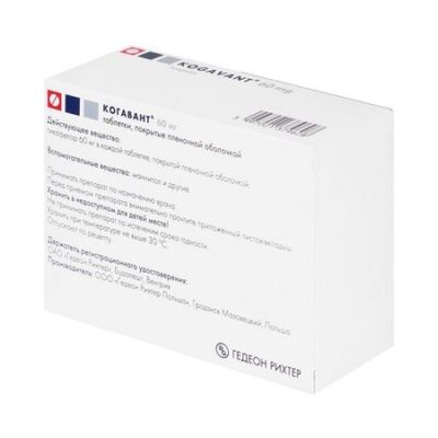 Главная » Аптека Когавант 90 мг, 56 шт, таблетки покрытые пленочной оболочкой Просмотров 6 Гедеон Рихтер-РУС АО/Гедеон Рихтер Польша