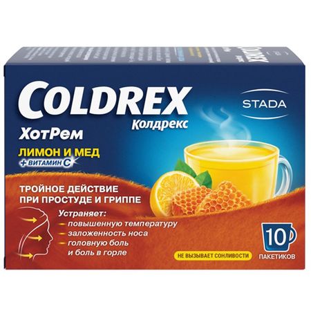Колдрекс Хотрем Пор.д/Приг.р-Ра Д/Приема Внутрь Мед-Лимон Пак.№10