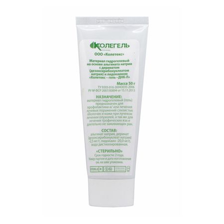 Материал гидрогелевый «Колетекс-гель-ДНК-Л» предназначен для профилактики и лечения лучевых реакций и повреждений слизистых оболочек (полости рта и ротоглотки, мочевого пузыря, прямой кишки, предстательной железы, шейки матки, влагалища и т.д.), кожи и молочной железы при проведении лучевой терапии.