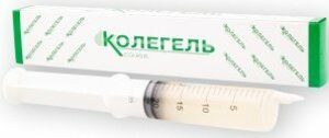 Материал гидрогелевый с альгинатом натрия, гиалуронатом натрия, деринатом (дезоксирибонуклеатом натрия) и лидокаином «Колетекс-ДНК-Л»Материал гидрогелевый «Колетекс-ДНК-Л» в шприце представляет собой гидрогелевый материл на основе альгината натрия, гиалуроната натрия с лекарственными препаратами деринатом (дезокирибонуклеатом) натрия и лидокаином (торговая марка Колегель-ДНК-Л).Фармакологическое действие дерината (дезоксирибонуклеата) натрия, лидокаина, альгината натрия и гиалуроната натрия.Входящий в состав материала гидрогелевого «Колетекс-ДНК-Л» (Колегель-ДНК-Л) деринат обладает иммуномодулирующей и антиоксидантной способностью. Дезоксирибонуклеат натрия (деринат) — биологически активное вещество, выделенное из молок осетровых рыб, высокоочищенная натриевая соль нативной дезоксирибонуклеиновой кислоты, деполимеризованной ультразвуком.Характеристики дезоксирибонуклеата натрия: Мол. масса — 270-500 кД, гипохромный эффект — не ниже 37 % (гипохромизм характеризует нативность, степень сохранности вторичной структуры, у абсолютно нативной ДНК- Na гипохромизм — 46 ± 1,5%), белок — менее 1% .По своей антирадикальной активности дезоксирибонуклеат натрия (деринат) занимает промежуточное положение между эмоксипином (0,61 k7х104(Mc)-1) и мексидолом (2,8 k7х104(Mc)-1). С учетом антирадикальной активности дезоксирибонуклеат натрия (деринат) может быть рекомендован к местному и системному применению как антиоксидантное средство.Дополнение гидрогелевой композиции 2%-ым раствором лидокаина снимает спазм периферических сосудов, способствует снятию болевого синдрома после получения повреждений или операций в течение 60-90 мин.Альгинат натрия выполняет функцию «депо» для лекарственных препаратов, обеспечивает их выход в подлежащие ткани в течении 48-72 ч. Кроме того, гель альгината натрия: создает атравматичный защитный слой на поверхности кожи или слизистых, предотвращая их повреждение во время лечебных манипуляций, обладает эпителизирующими свойствами, способствует регенерации нормальных тканей, обладает гемостатическим действием.Гиалуронат натрия — натриевая соль гиалуроновой кислоты, природный полисахарид. Входит в состав гликозаминогликанового слоя мочевого пузыря, защищая его от агрессивного воздействия мочи и бактерий. Внутрипузырное введение препаратов гиалуроновой кислоты способствует восстановлению защитных функций стенок мочевого пузыря. , , , Урология — внутрипузырные инстилляции с целью лечения, профилактики и обезболивания:Хронического бактериального рецидивирующего цистита, Лучевого цистита, Интерстициального цистита, Гиперактивного мочевого пузыря (некоторые формы), Уретрита, Цистита туберкулезного, Лейкоплакии, Послеоперационных эрозий после трансуретральных вмешательств. , , , , Использование гидрогеля «Колегель-ДНК-Л» с деринатом и лидокаином противопоказано при индивидуальной непереносимости к компонентам, входящим в лекарственную композицию, в виде местных и генерализованных аллергических реакций (эксфолиативный дерматит, анафилактический шок, ангионевротический отек, контактный дерматит (гиперемия в месте нанесения, кожная сыпь, крапивница, зуд), кратковременное ощущение жжения в области действия геля.Назначение гидрогеля «КОЛЕГЕЛЬ» ® «Колетекс-ДНК-Л» противопоказано: возраст младше 18 лет, пр