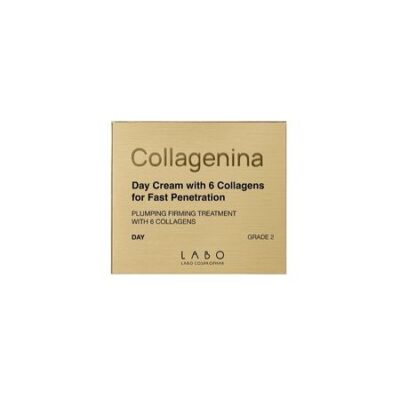 Подтягивающий и укрепляющий дневной крем с 6 молекулами коллагена. Крем предназначен для использования в качестве подтягивающего и укрепляющего средства для дневного ухода за кожей лица. Содержит 6 молекул коллагена с дифференцированной молекулярной массой (гидролизованный коллаген 2000 Да, аминокислоты коллагена 240 Да, гидролизованный коллаген 4000 Да, гидролизованный коллаген 12000 Да, растворимый коллаген 230000 Да, растворимый коллаген 300000 Да). Также содержит компоненты для выработки коллагена организмом (глицин, пролин, гидроксипролин, пальмитоила трипептид-5) и для антигликационного действия (карнозин). Трансдермальная технология с 5 молекулами усилителями. Уровень 2: заметная потеря объема, особенно по линии скул; мимические морщины. Возрастные видимые изменения с выраженным и неравномерным микрорельефом кожи