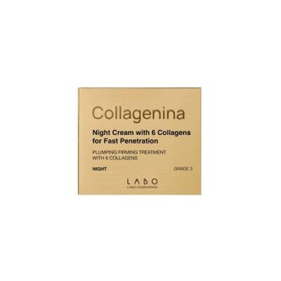 Подтягивающий и укрепляющий ночной уход с 6 молекулами коллагена. Крем предназначен для использования в качестве подтягивающего и укрепляющего средства для ночного ухода за кожей лица , содержащего 6 молекул коллагена с дифференцированной молекулярной массой (гидролизованный коллаген 2000 Да, аминокислоты коллагена 240 Да, гидролизованный коллаген 4000 Да, гидролизованный коллаген 12000 Да, растворимый коллаген 230000 Да, растворимый коллаген 300000 Да). Также содержит компоненты для выработки коллагена организмом (глицин, пролин, гидроксипролин, пальмитоила трипептид-5) и для антигликационного действия (карнозин). Трансдермальная технология с 5 молекулами усилителями. Уровень 3: выраженная потеря объема, также и по линии скул, наличие морщин, очень выраженный неравномерный микрорельеф кожи.