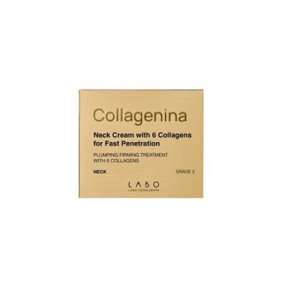 Подтягивающее и укрепляющее средство для шеи и области декольте с 6 молекулами коллагена. Крем предназначен для использования в качестве подтягивающего и укрепляющего ухода. Он содержит 6 молекул коллагена с дифференцированной молекулярной массой (гидролизованный коллаген 2000 Да, аминокислоты коллагена 240 Да, гидролизованный коллаген 4000 Да, гидролизованный коллаген 12000 Да, растворимый коллаген 230000 Да, растворимый коллаген 300000 Да). В состав также входят компоненты для выработки собственного коллагена организмом (глицин, пролин, гидроксипролин, пальмитоила трипептид-5) и для антигликационного действия (карнозин). Трансдермальная технология с 5 молекулами усилителями. Уровень 3: выраженная потеря объема, также и по линии скул, наличие морщин, очень выраженный неравномерный микрорельеф кожи.
