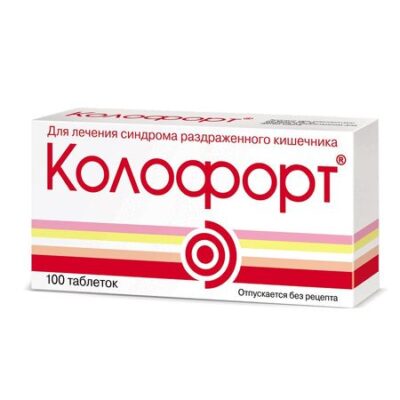 Таблетки плоскоцилиндрической формы, с риской и фаской, от белого до почти белого цвета. На плоской стороне с риской нанесена надпись MATERIA MEDICA, на другой плоской стороне нанесена надпись KOLOFORT.