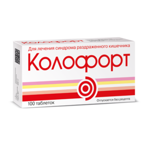 Таблетки плоскоцилиндрической формы, с риской и фаской, от белого до почти белого цвета. На плоской стороне с риской нанесена надпись MATERIA MEDICA, на другой плоской стороне нанесена надпись KOLOFORT.